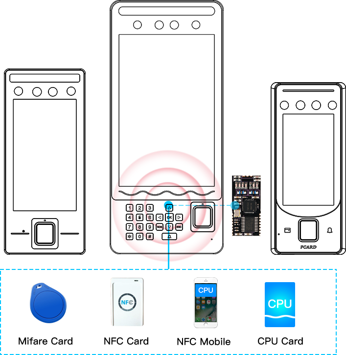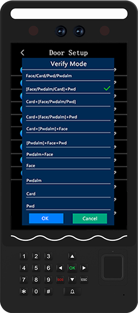 Face, Finerprint, Palm Vein, QR Code, Password,