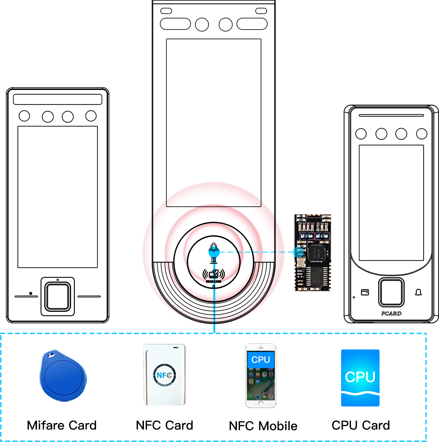 13.56MHz supports not only Mifare cards, but also NFC cards,