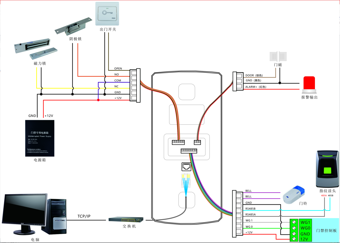 麻煩提供一下FC-C103E指紋門禁一體機的連線圖,謝謝。